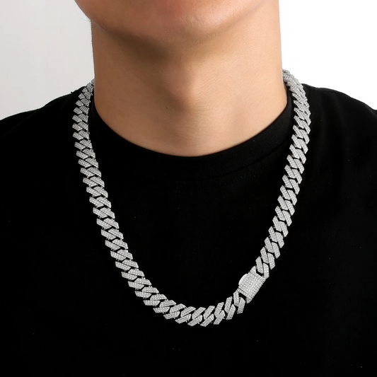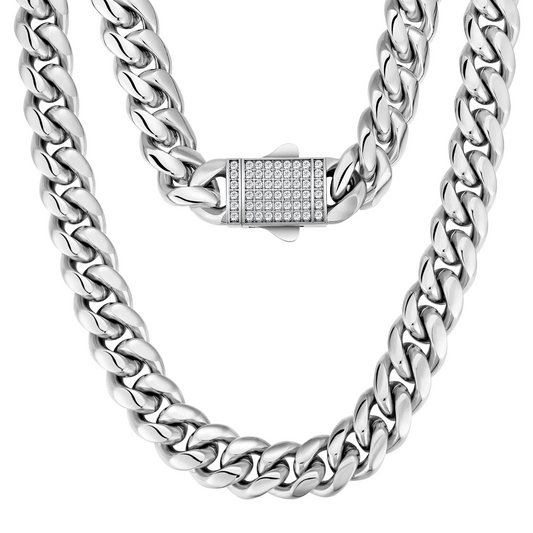 【BOX-CLASP】12mm CZダイヤ 方形 喜平ネックレス メンズ