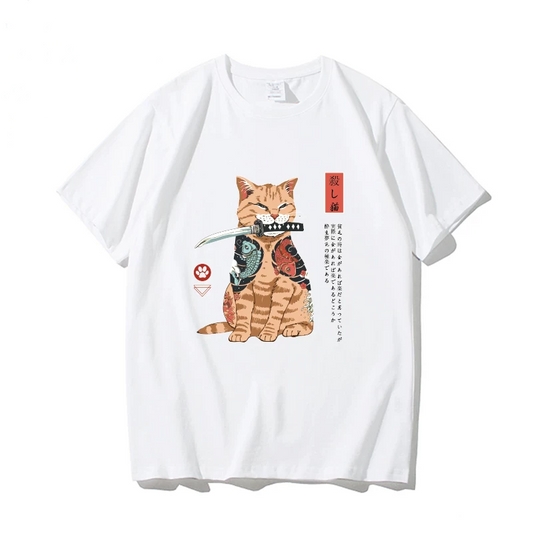 「クロスジップの隙間から覗く猫」プリントTシャツ