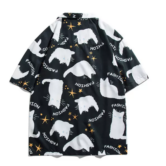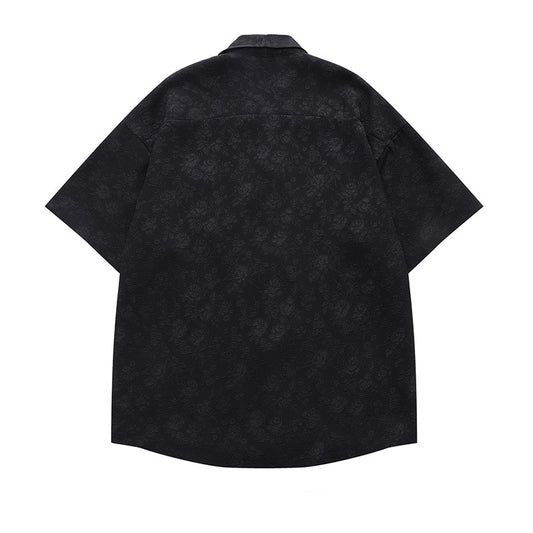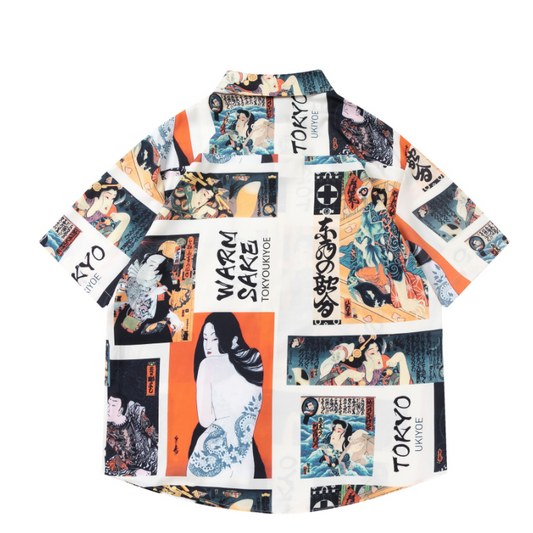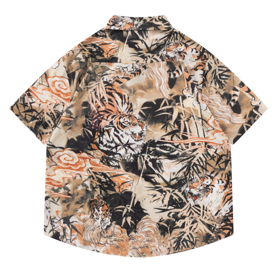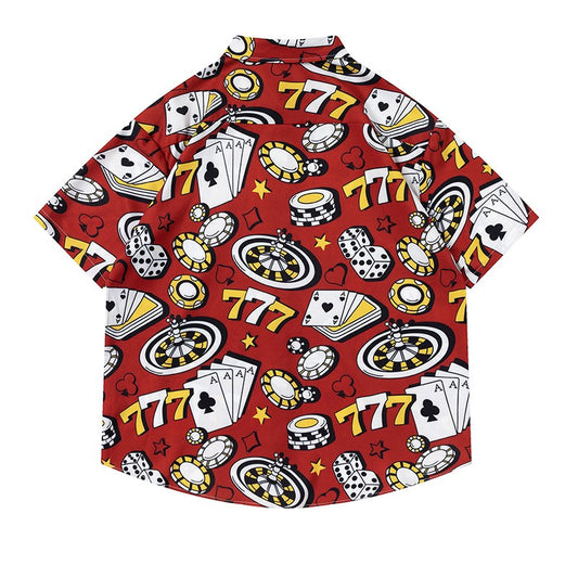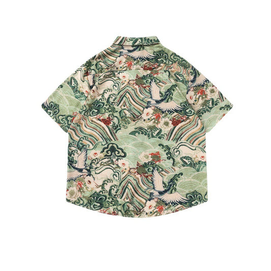麻雀プリント総柄 通気軽量 開襟シャツ