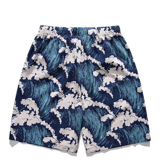 ハワイ海の波クジラプリント総柄アロハシャツ
