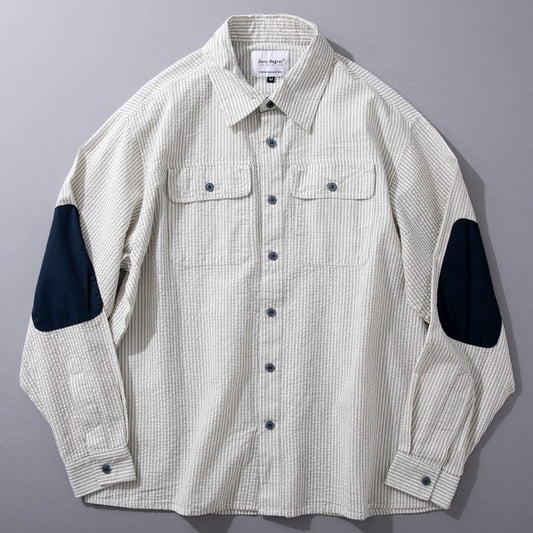 パッチ切り替え春夏メンズ長袖シャツ