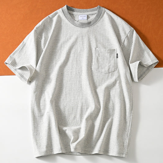 Ivy Style 260Gボーダーポケットひも Tシャツ