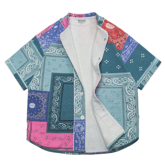 不規則ペイズリーバンダナ柄ベースボールシャツ