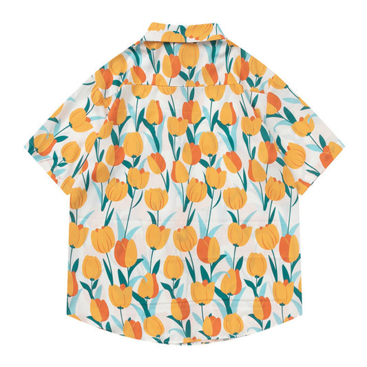 ホリデースタイルのチューリップ総柄半袖シャツ