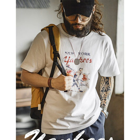 YANKEES!バッティングプリント&野球刺繡コットンTee
