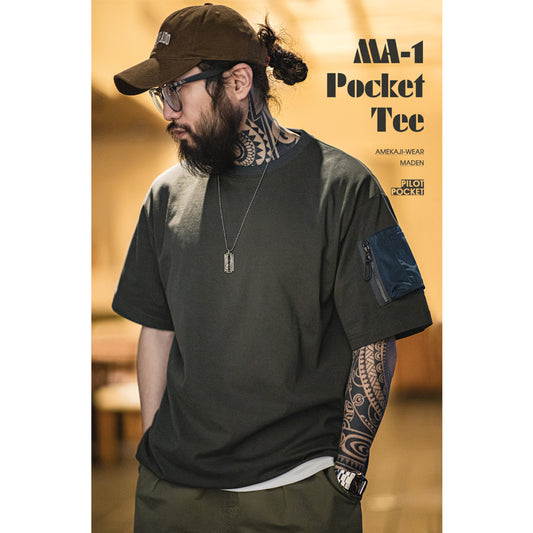 配色襟口 MA-1ポケット付きコットンTシャツ
