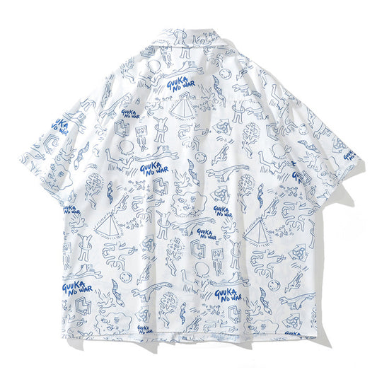 夏新作ハワイ風グラフィティプリント半袖シャツ