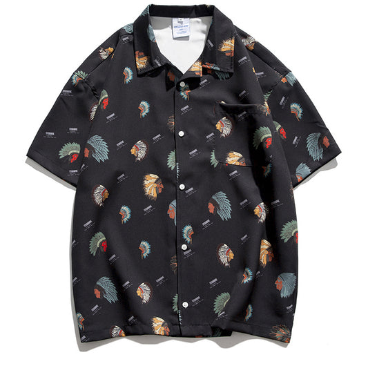夏新作アロハ配色プリント半袖シャツ