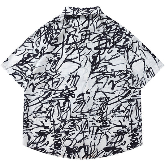 アロハ調落書きプリント半袖シャツ