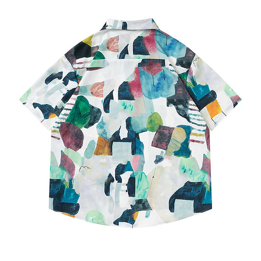 レトロキューバカラープリント半袖シャツ