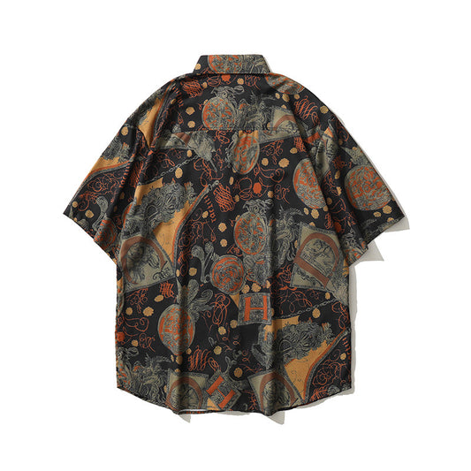 レトロ アロハプリント半袖シャツ
