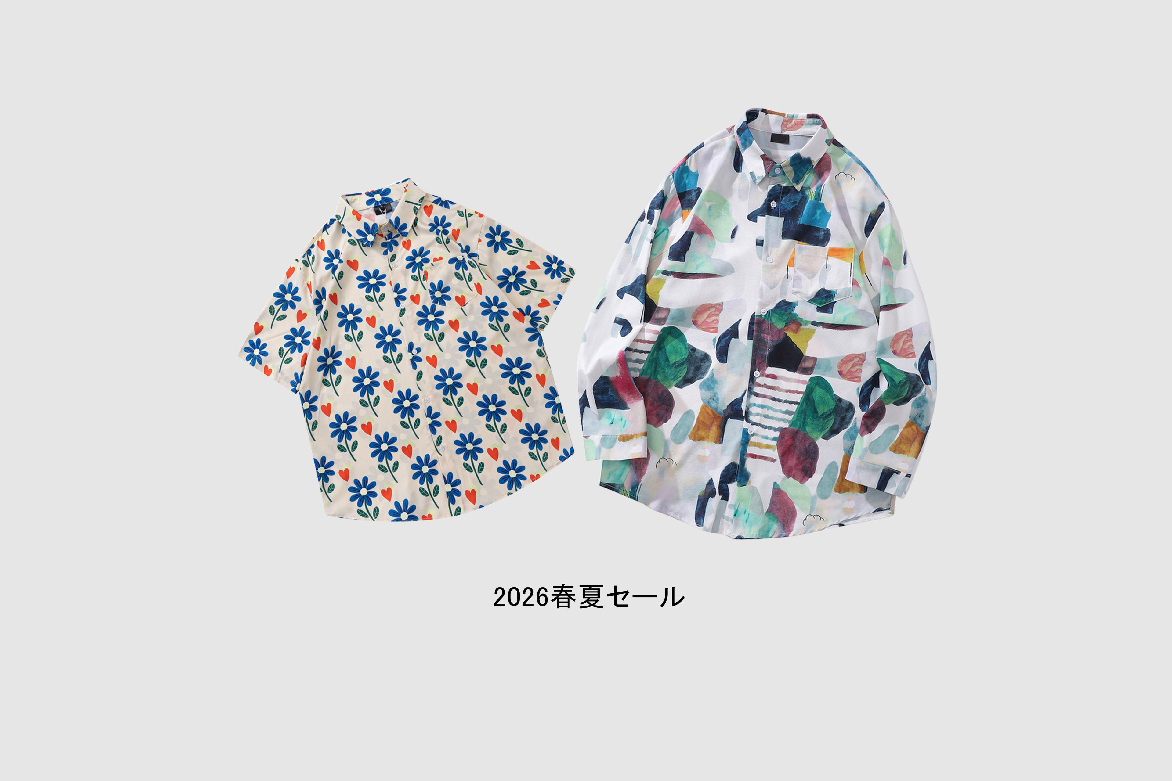 レトロ風ゆったり感花柄アロハシャツ