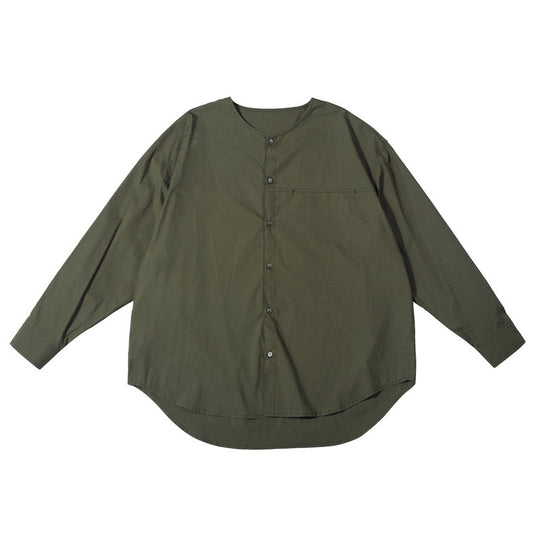 カジュアルノーカラー無地シャツ