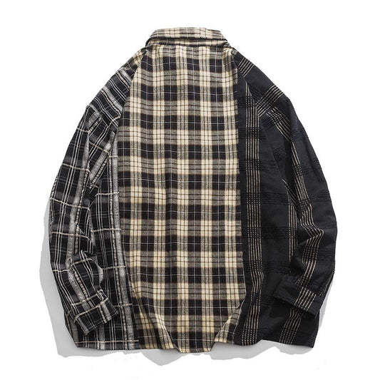 5種類チェック柄カジュアル パッチワークシャツ