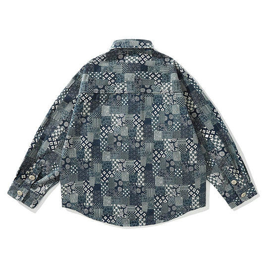 古布風 総柄ワークシャツ