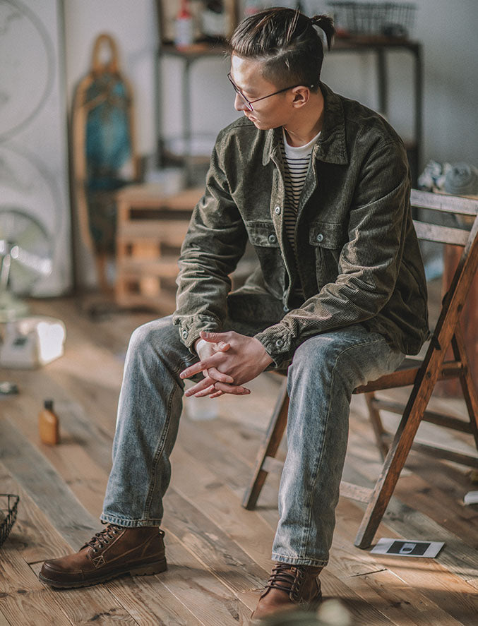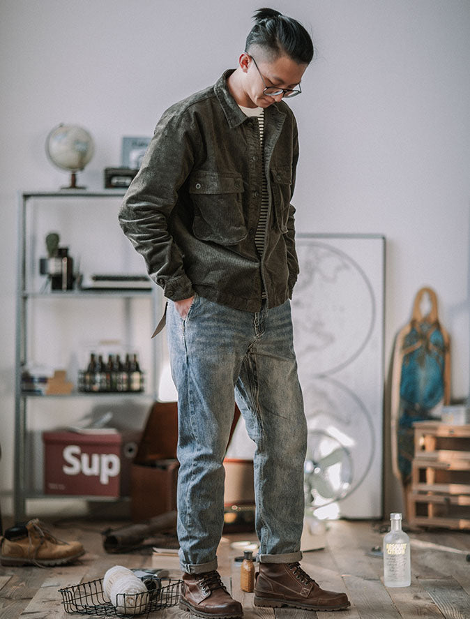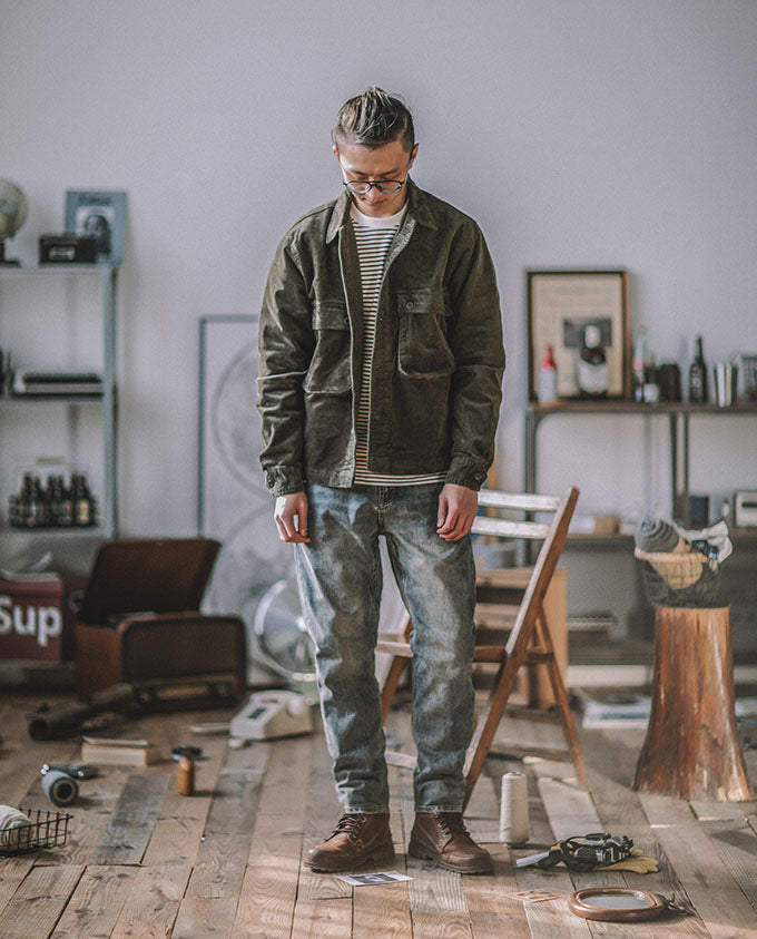 It has been washed and given a distressed look, making it a great match for both work and casual styles. Enjoy wearing it in a variety of ways.