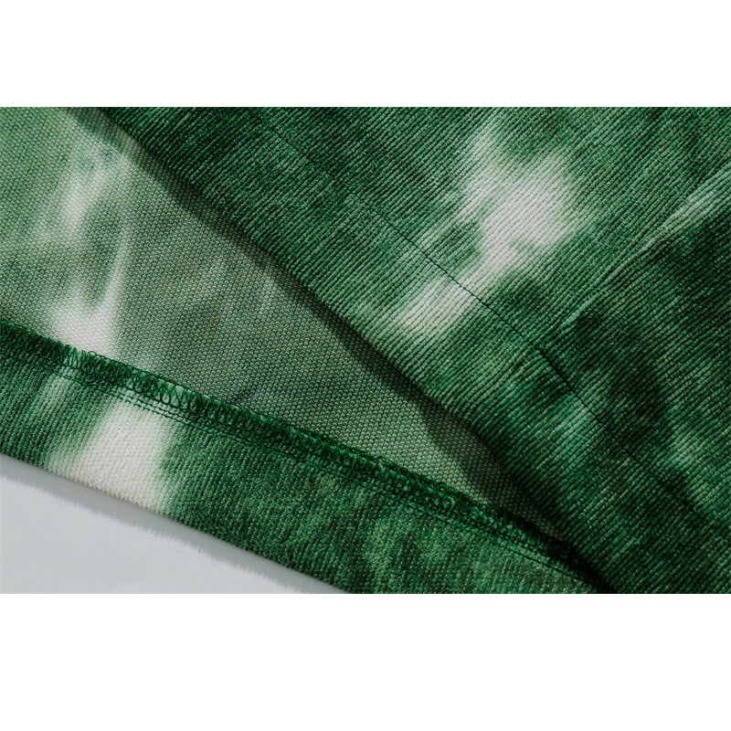 Hawaiian print tie-dye collarless short-sleeved shirt