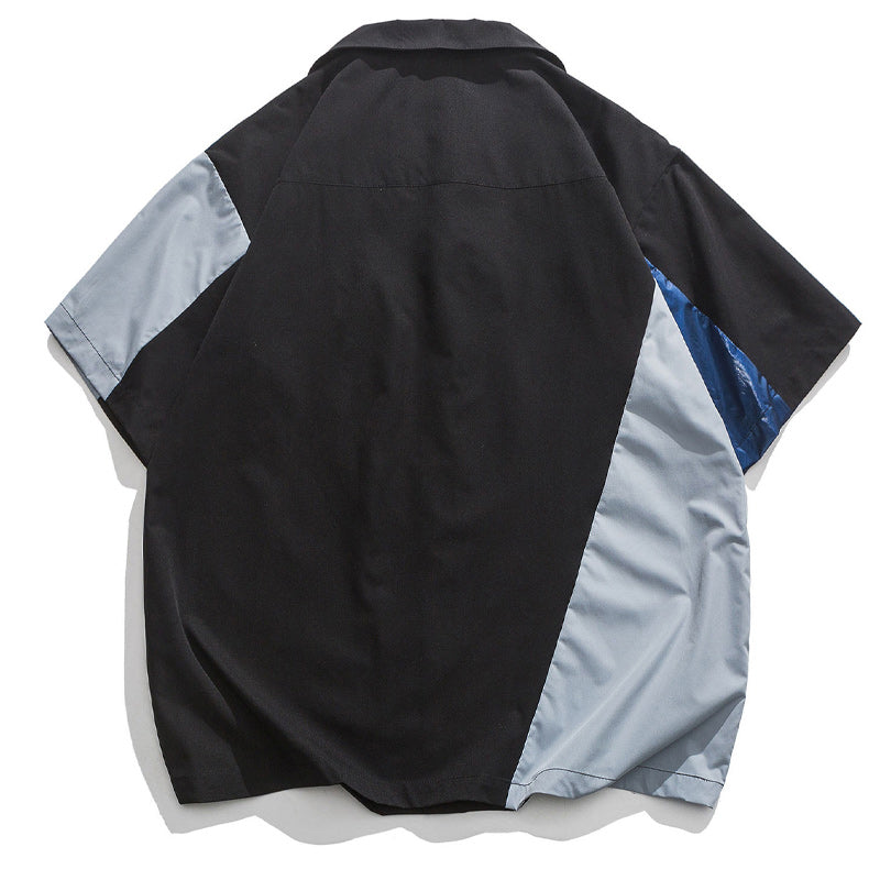 Fashion Cuban neck color combination short sleeve shirt