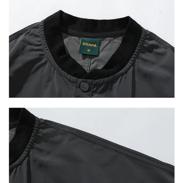 カラーリングも絶妙な配色で表現。上品で知的な印象を与えてくれるネイビー、使い勝手のグレー以外に、春夏にフレッシュなグリーンも追加、全部で3色展開。どれもビンテージ感が満載。クリーンな配色にすることで様々なテイストのコーディネートに取り入れやすい雰囲気にもなる。デザインの面では、襟、ポケット、袖口の配色デザインにレトロな雰囲気を感じられる上品な見た目に仕上がり。通常の胸ポケットに配色ステッチに縫製された模様などほかにはないセンスが光る。すっきりとした首元を演出するスタンドカラーが魅力。フロントボタンはスナップ式で、スムースな開閉をアシストする。身幅にゆとりを持たせてデザインされたトレンドライクなゆったりとしたシルエット。更に、肩回りが動かしやすく、抜け感をプラスしたラグランスリーブもワンポイント。上質なポリエステル生地を使用滑らかで肌触りの良い生地感が爽快な着心地を実現サラッと羽織っていただけます