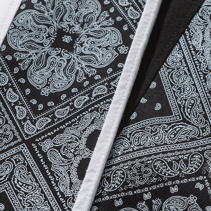 フロントにペイズリー柄のパッチワークをあしらい、花弁模様などの植物をモチーフにした柄を敷き詰めるデザインがオシャレ。