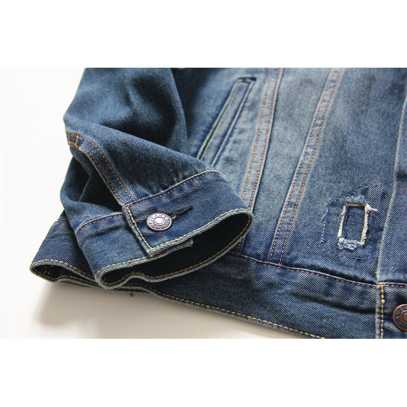 折り襟ウォッシュ加工ダメージジーンズジャケット