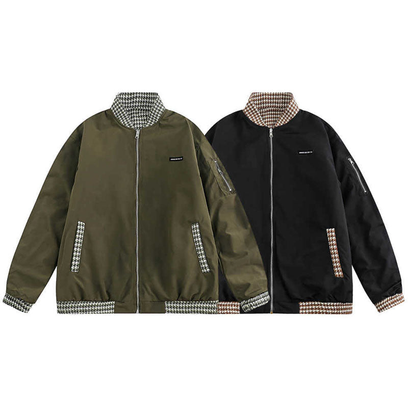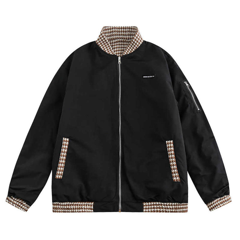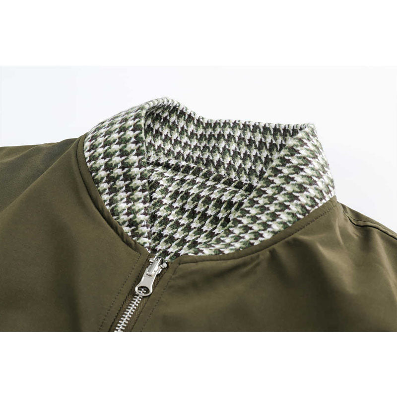 両面着れるチェック柄切替ジャケット