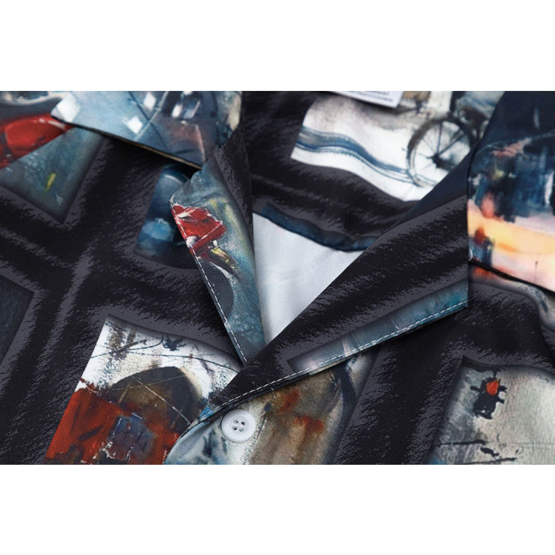 「雨の日」総柄半袖シャツ