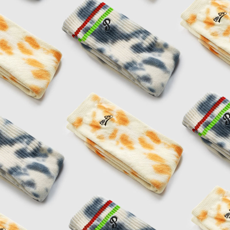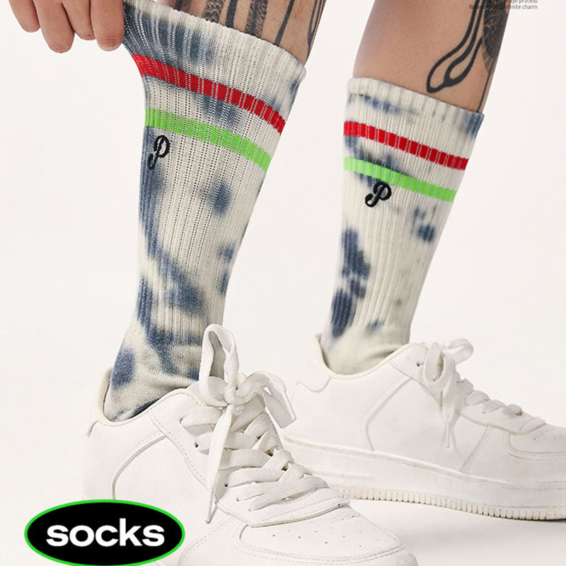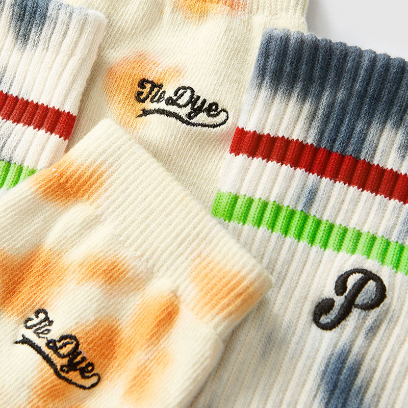 「三足セット」絞り染め刺繍アルファベットハイソックス
