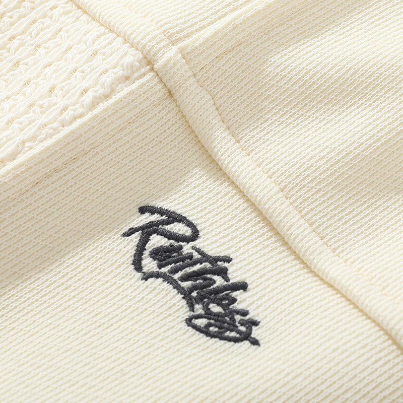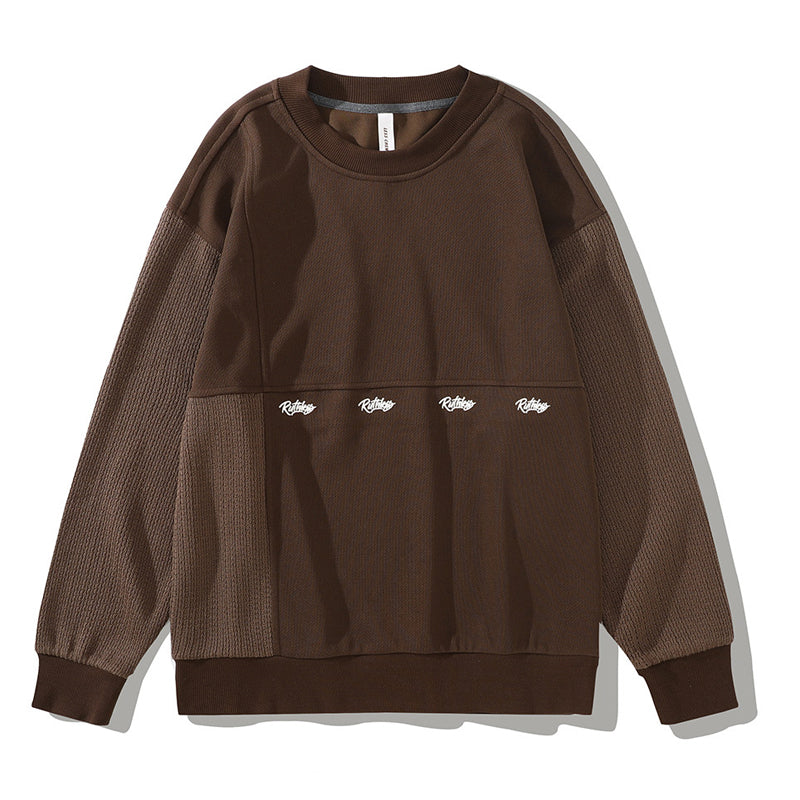 プリント アルファベット 刺繍 切り替え ラウンドネック パーカー