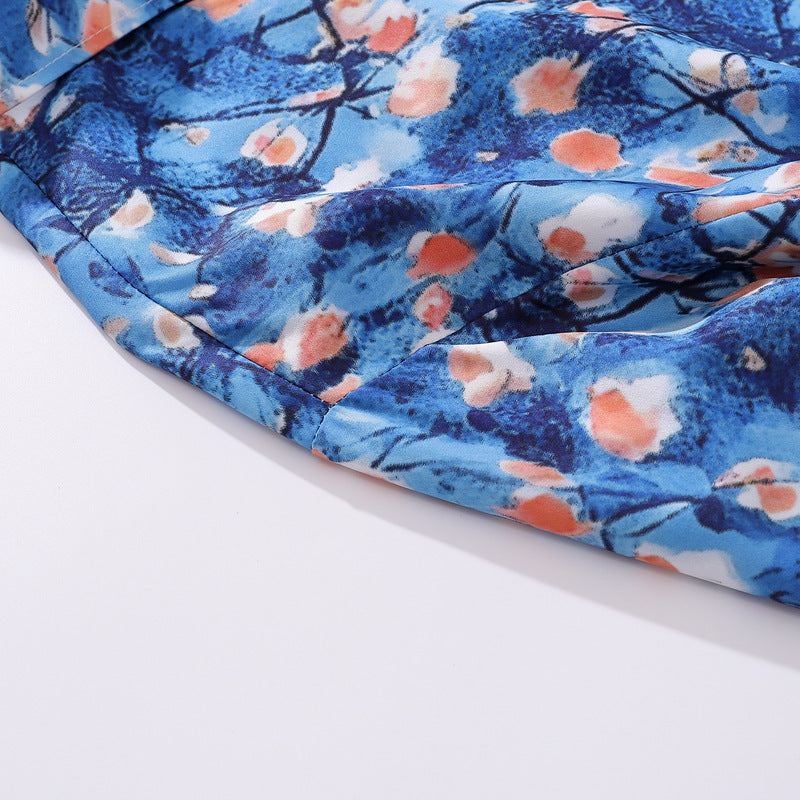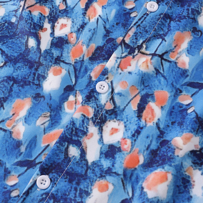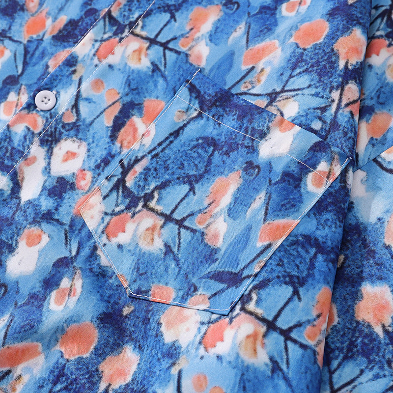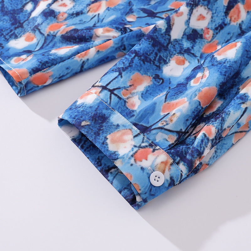 春新作花柄油絵模様総柄長袖シャツ