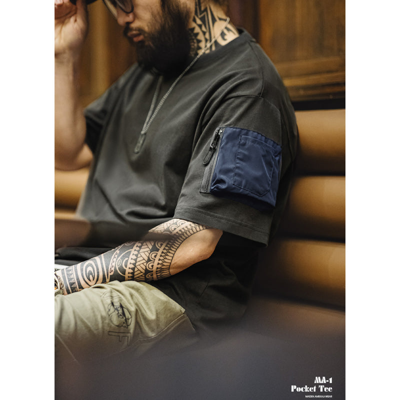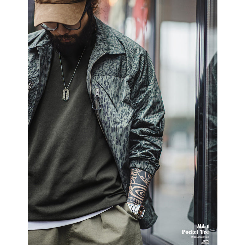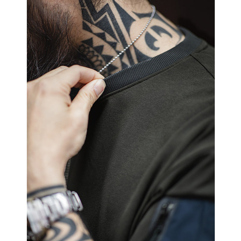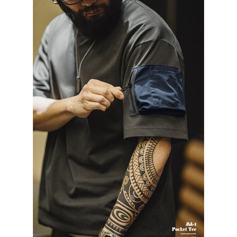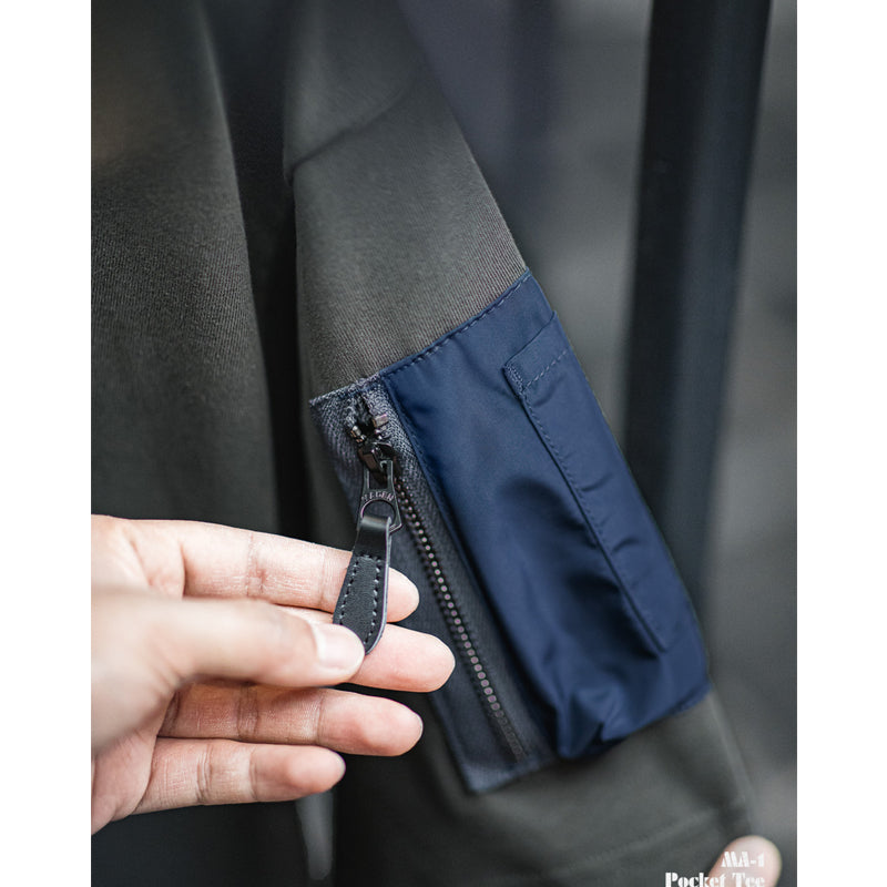 配色襟口 MA-1ポケット付きコットンTシャツ