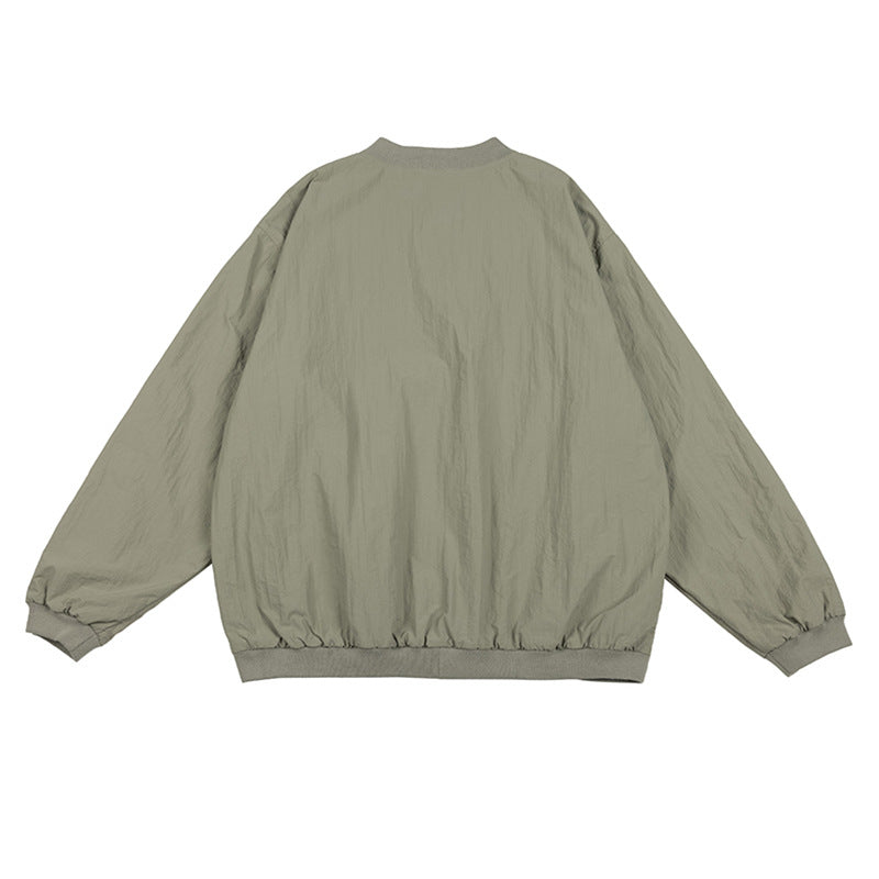 混合色ストライプVネックプルオーバーパーカー