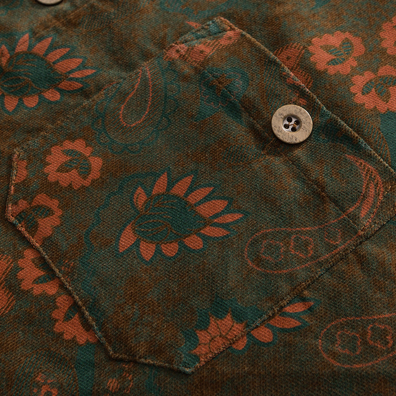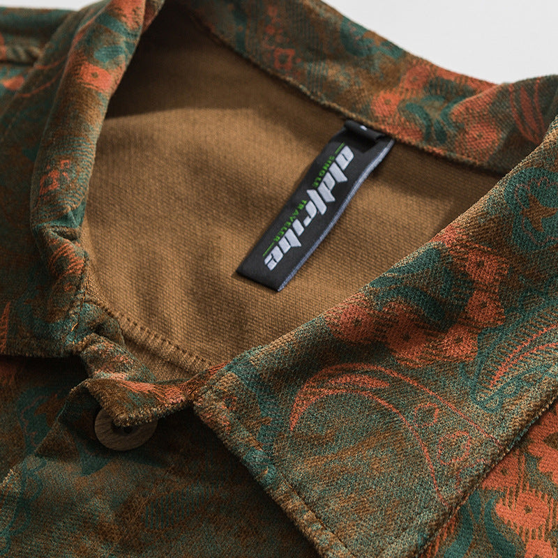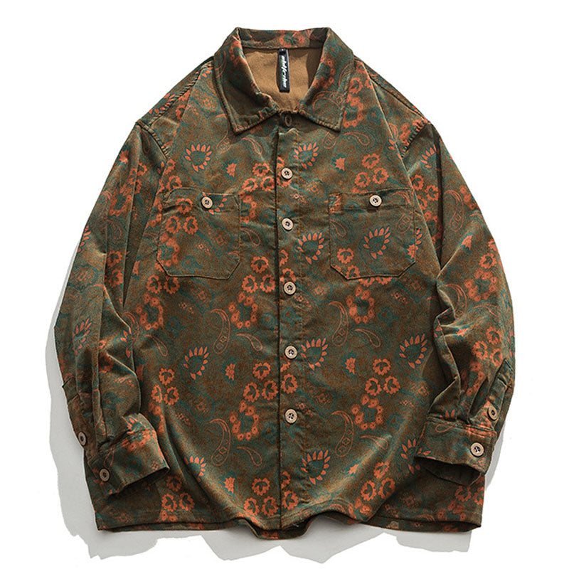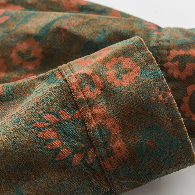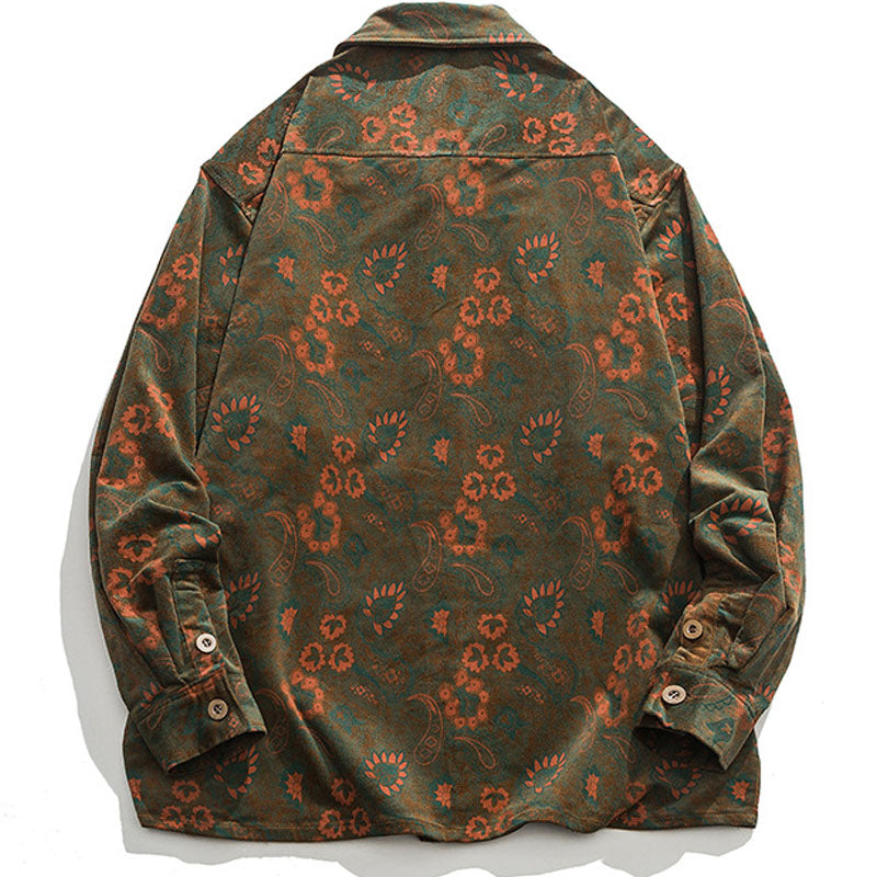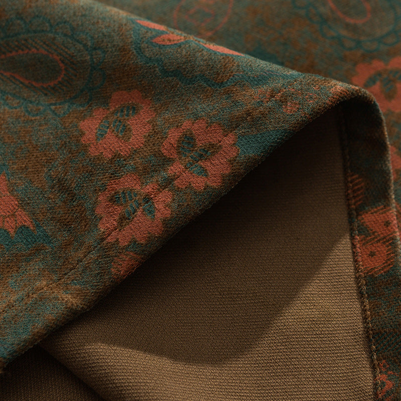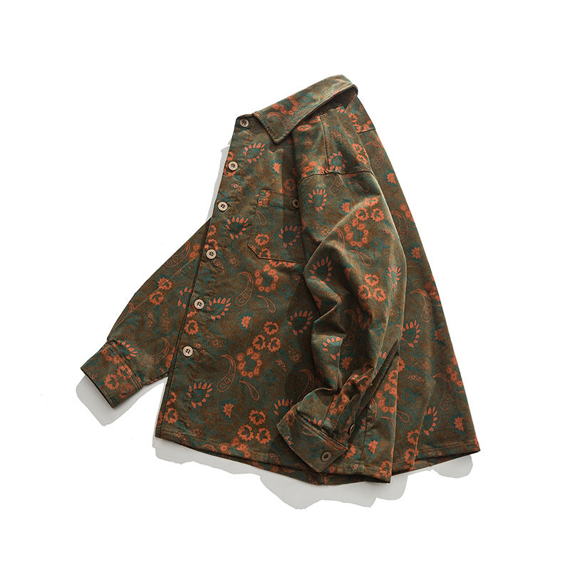 花柄 プリント スクエアネック 長袖 エスニック風 シャツ