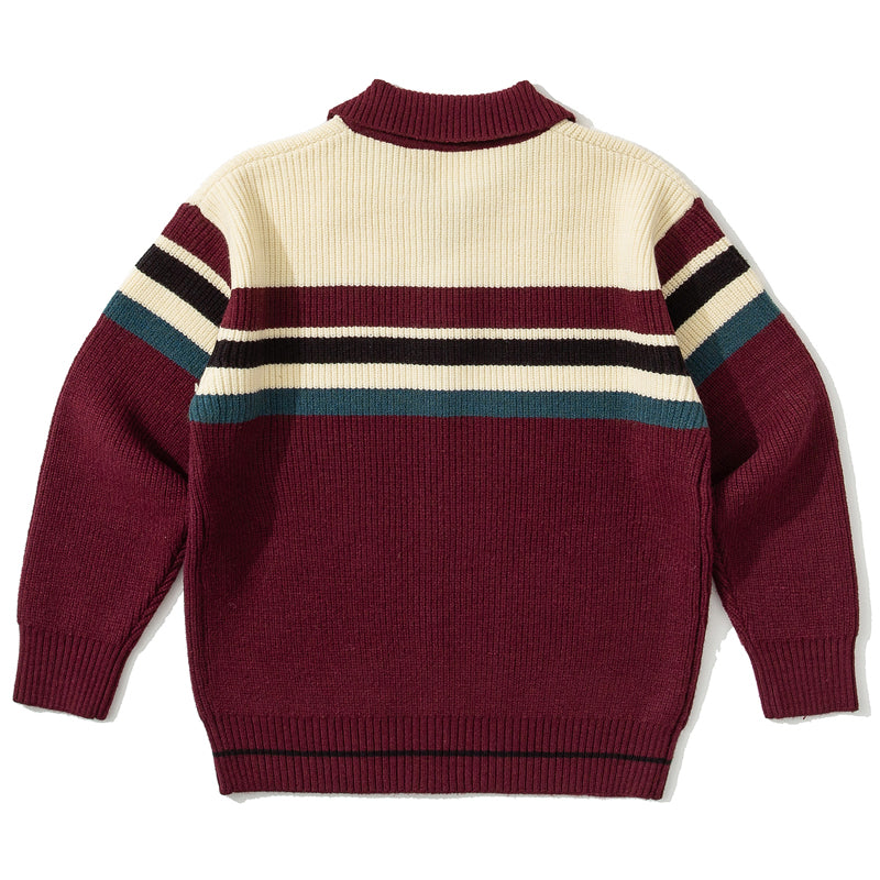 アメカジからストリートまで今期大注目のカレッジカーディガンが登場!無地柄とボーダー柄の切り替え仕様はカレッジらしく上品に仕上げた1枚。折りカラーが特徴的なスタイリッシュなデザインで、前開きのジッパーが付いており、襟元をすっきりと演出、カジュアルながらも上品さを兼ね備えている。また、袖口や裾にはリブ編みが施され、フィット感を高める。ゆったりとしたメンズライクなシルエットとやわらかな編地で、リラックスした着心地に◎一枚で様になる主役級ニットです!
