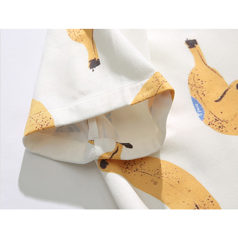 バナナプリントハワイアン半袖シャツ