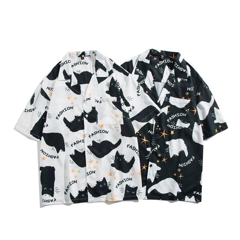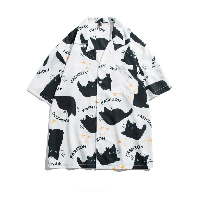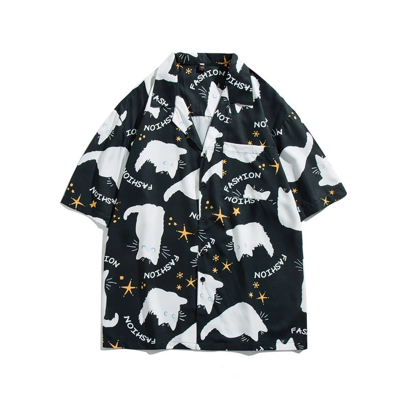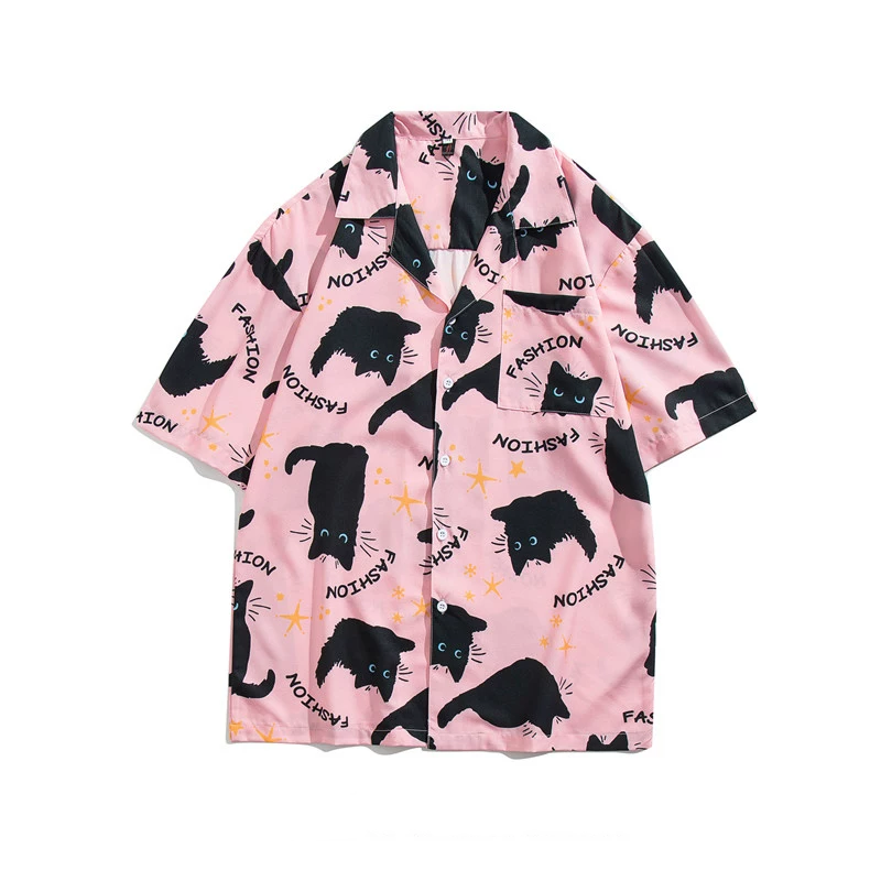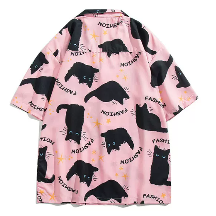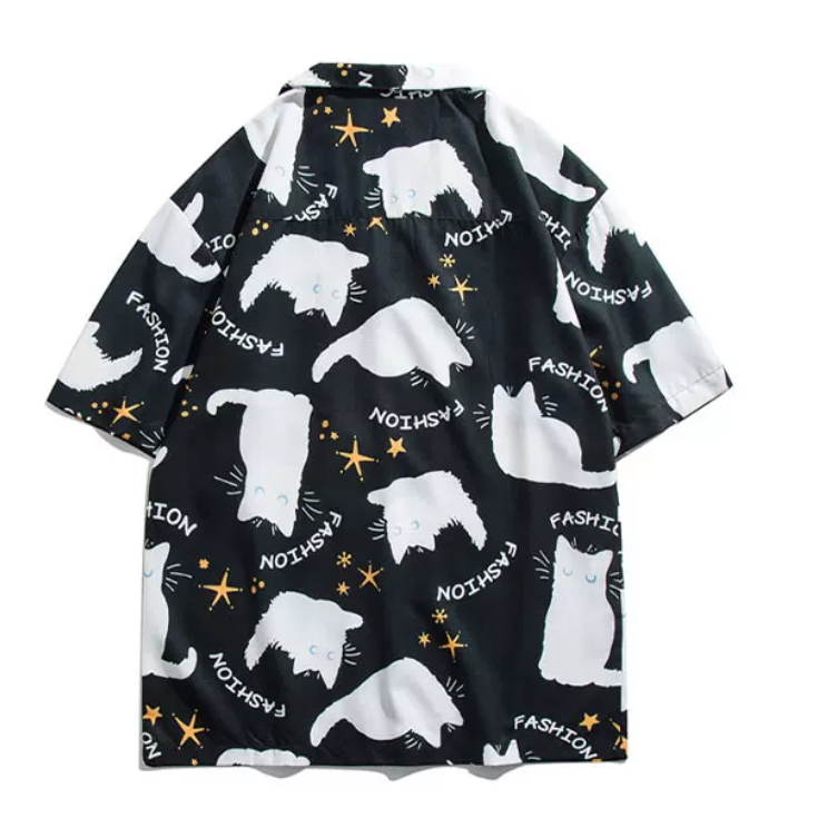 ゆったり感猫プリント半袖シャツ3色